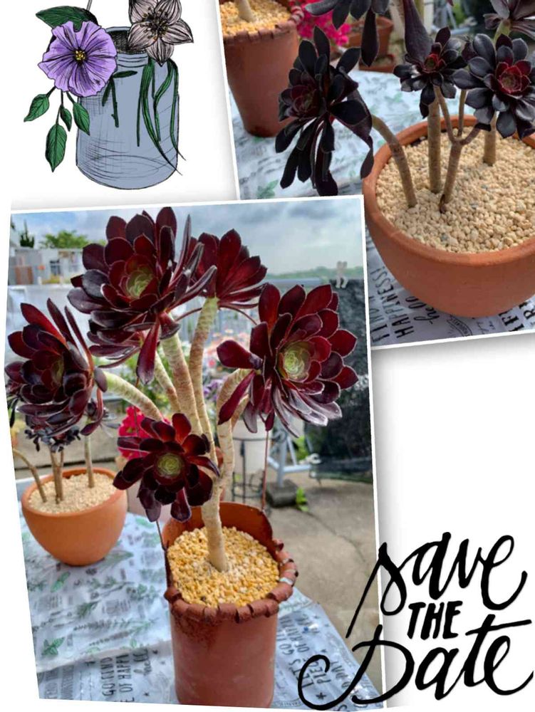 ↙️が一番新入りさん、自然園でお連れした物、土の中から、ポット毎引き抜いた新鮮な⁉️立木🤎 右上のは、少し前に園芸店で…全部で5鉢ありますね🖤🌿🤎