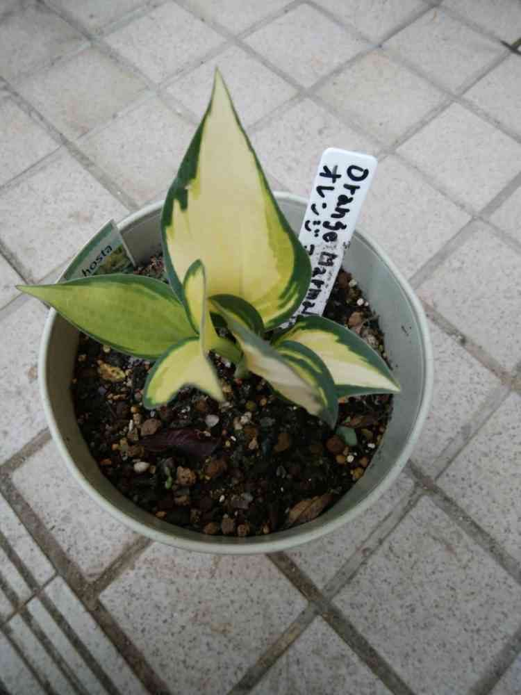 ギボウシ オレンジマーマレード。綺麗な中斑で、欲しかったんだけれど、なかなか手に入らなかったホスタ。