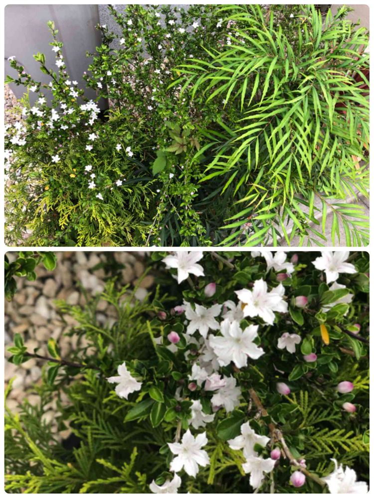 玄関横の花壇に入居時から植っていた常緑の植木のお花🌼