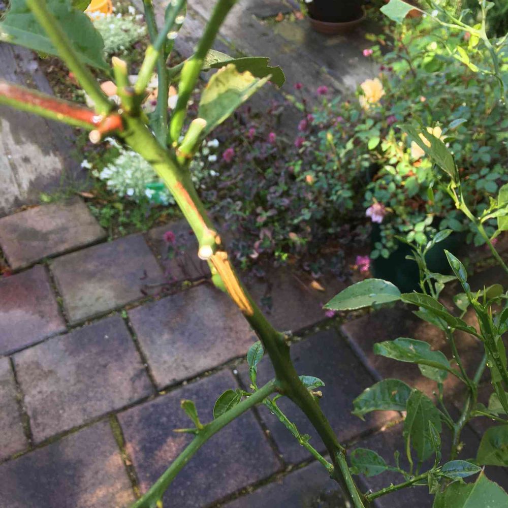 文旦にチュウレンジハバチの跡が…去年のかな?とりあえず木工ボンド塗っておく