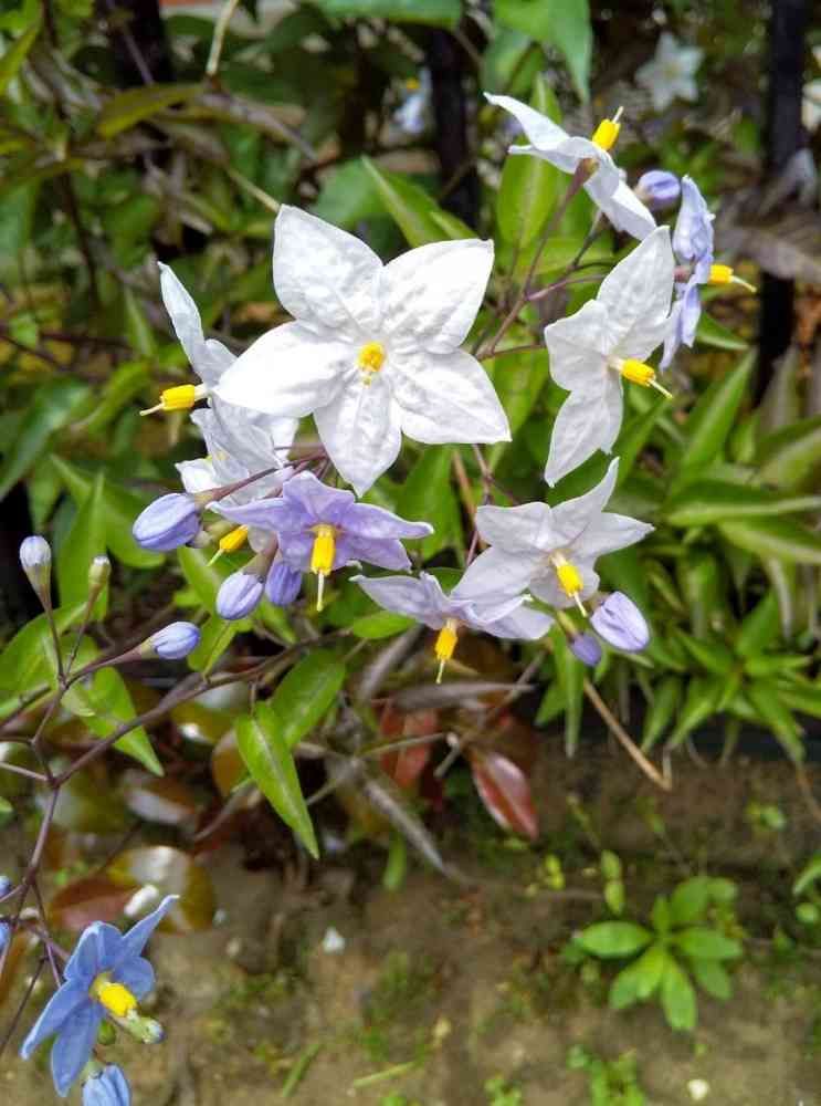白や紫色が咲くツルハナナスの花、とても可愛いです💕
