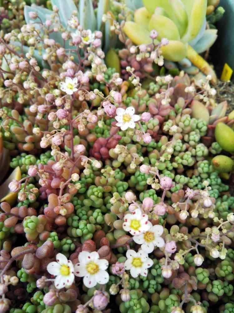 セダム ・パープルヘイズさんのお花が咲きだしました😊葉っぱちゃんがカラフルで お花さんは清楚です😻