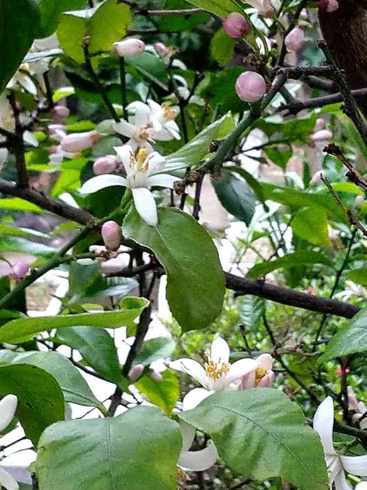 🍋🍀レモンの木にピンク色の蕾、次々と白いお花が咲きました😍