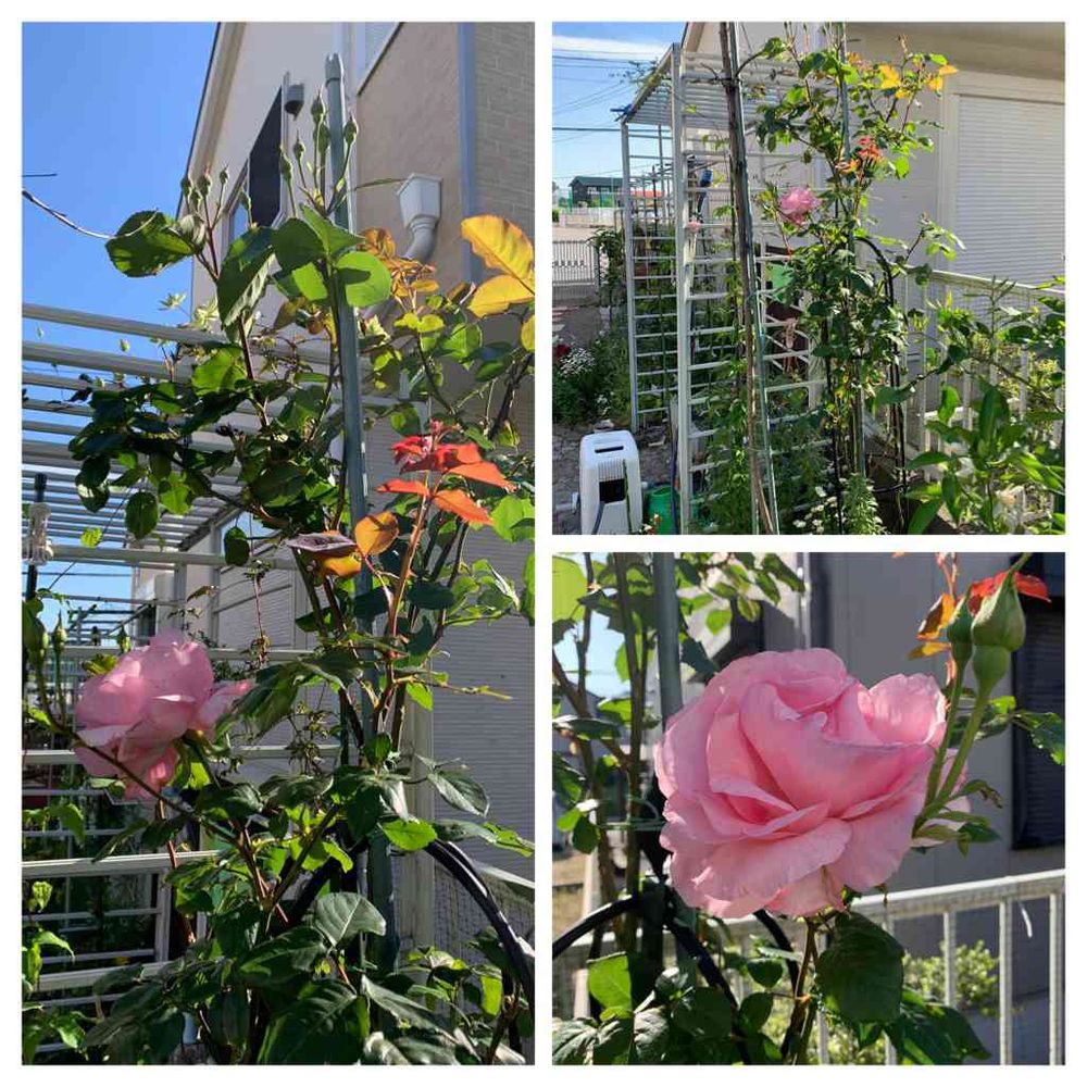 upしたバラは、写真に🤳撮れる位置ですが、確かに一番上の方の蕾が開花したら、下から見上げるだけになりますね😅
