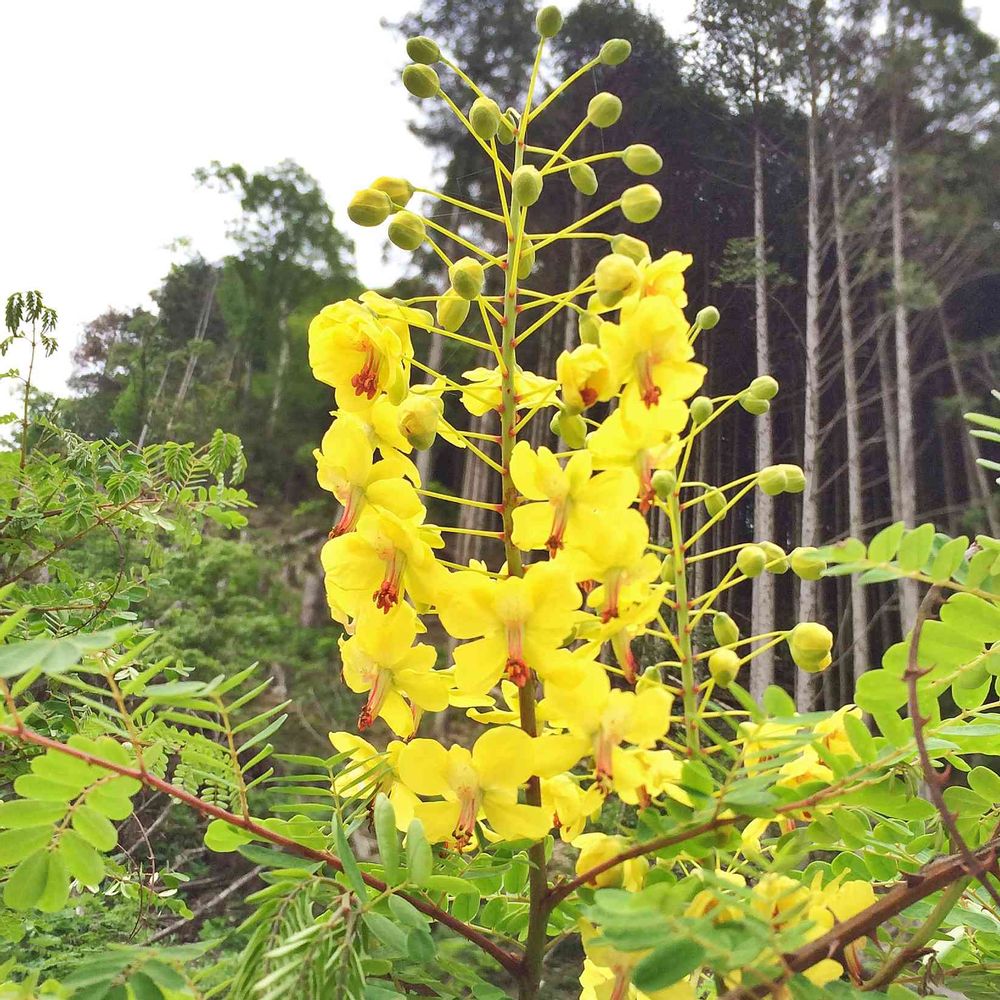 山登りの帰り道に鮮やかな黄色い花が目立ってました。