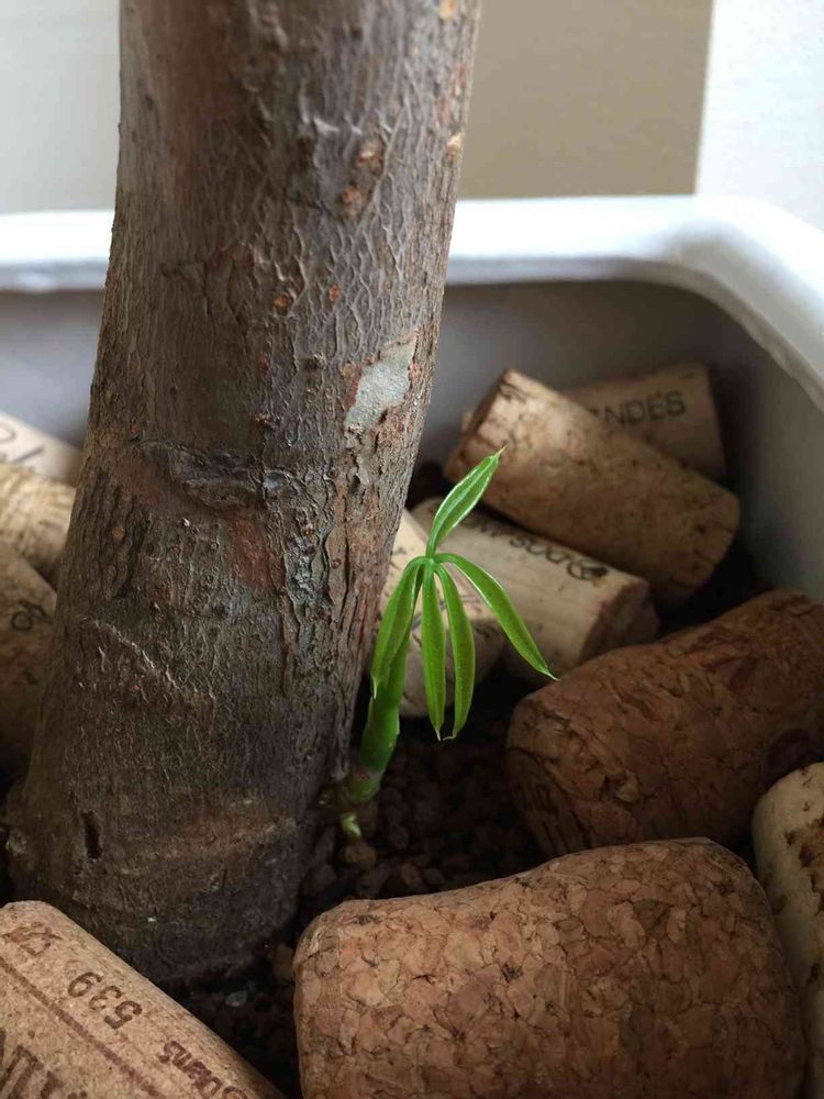 パキラの株元から、赤ちゃんパキラが芽を出してます(*´∀`)♪