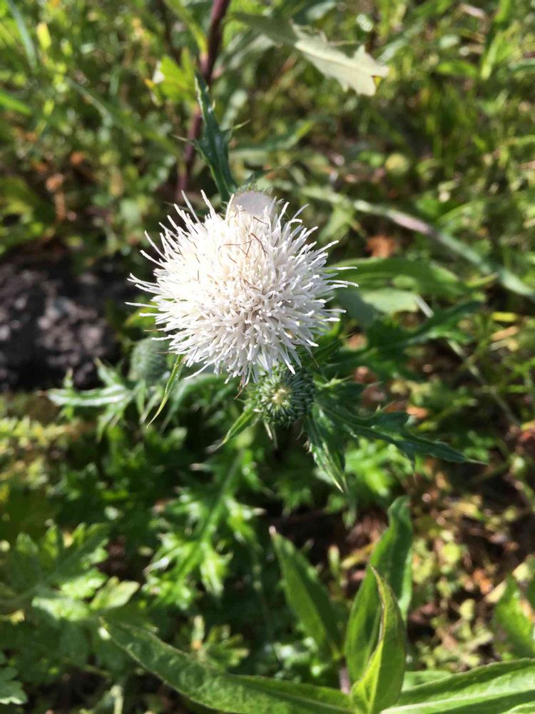 今日、農道をスロージョギングしていたら始めて白いあざみに出会いました。珍しいですよね。