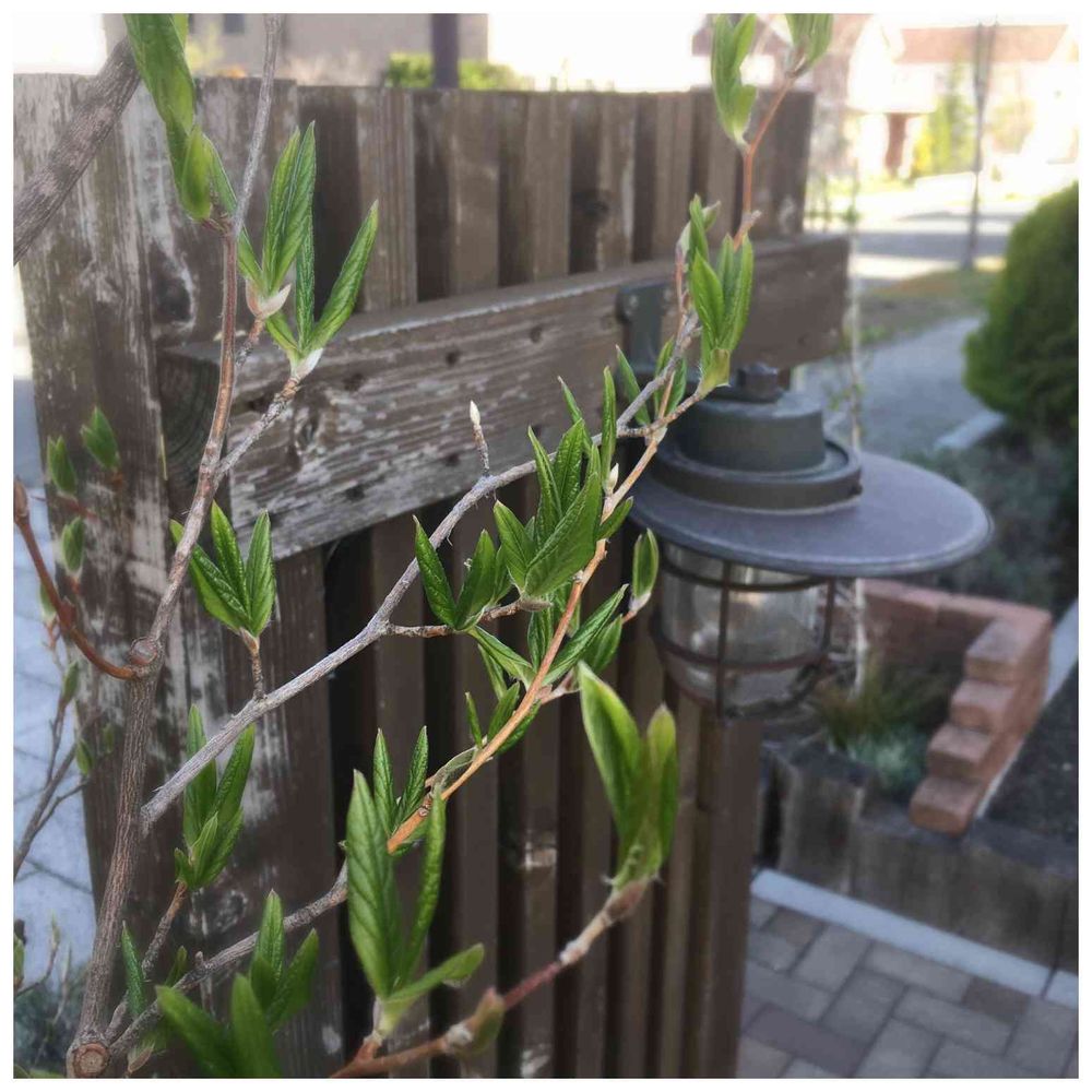 玄関アプローチのシャラの木も青々新芽が育ってます。