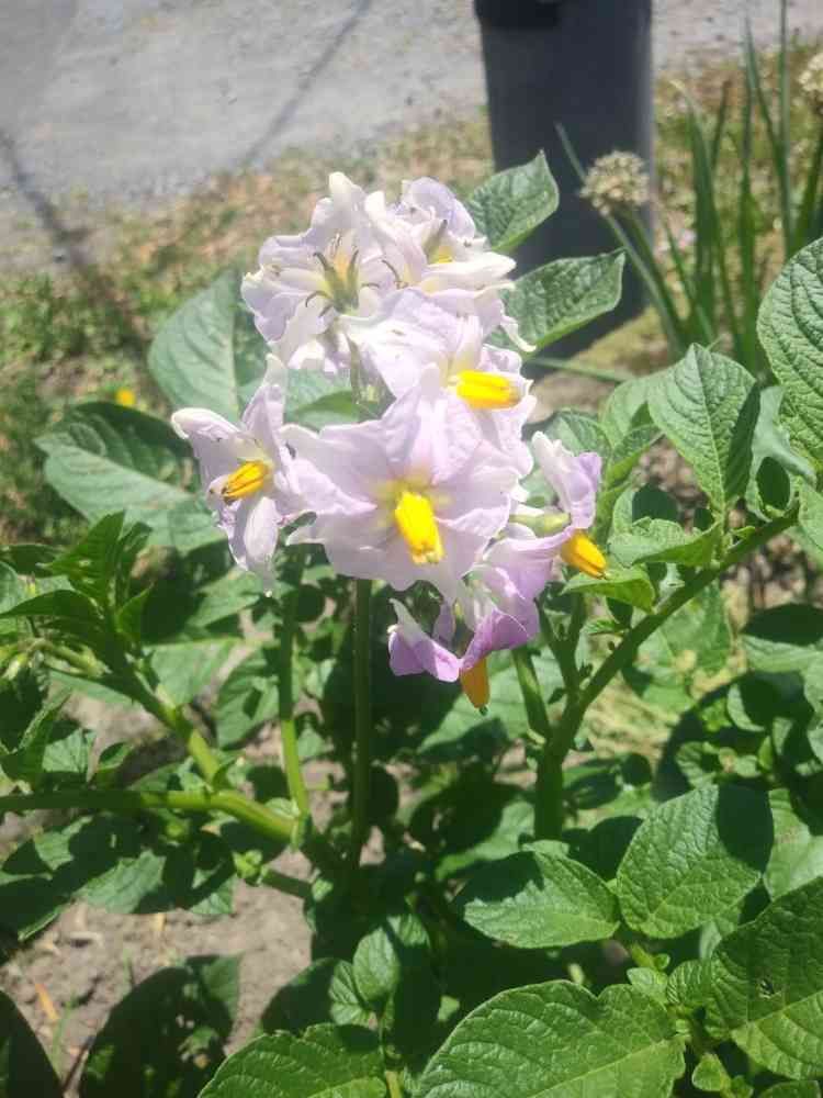 風があって涼しい😊菜園畑のジャガイモの花 意外と綺麗ですよね 大きくな~れ😆💕