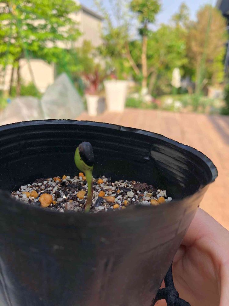 ひまわりの発芽。種の殻をくっつけて、芽が出ました。勢いがあって良いなぁ😊