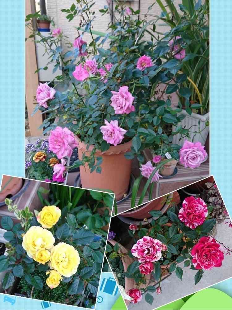 薄紫のミニバラは買ったときは3号鉢だったけど少しずつ大きくして今は10号鉢🐌