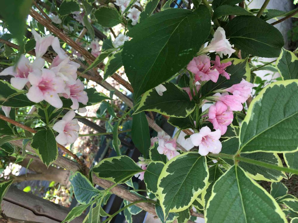 濃淡のピンク色の花と班入りの葉がかわいい💕