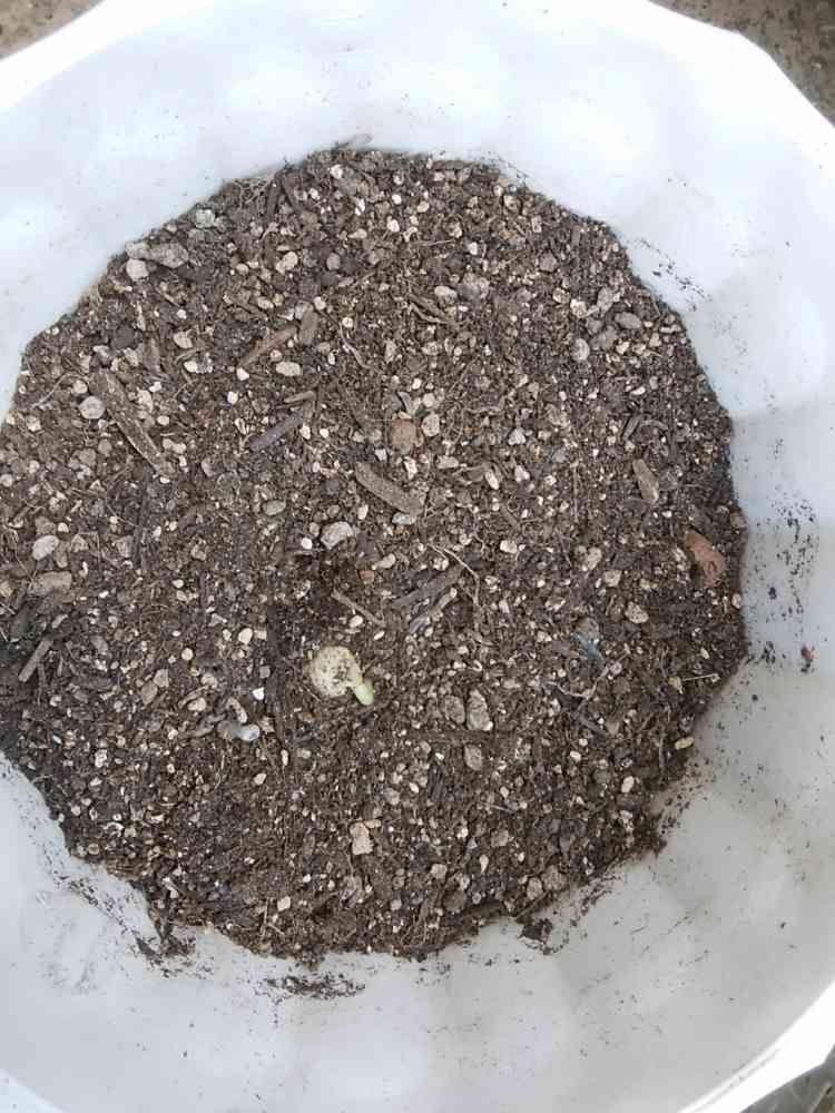 5月9日に播種した枝豆、ようやく1つ発芽しそうです。