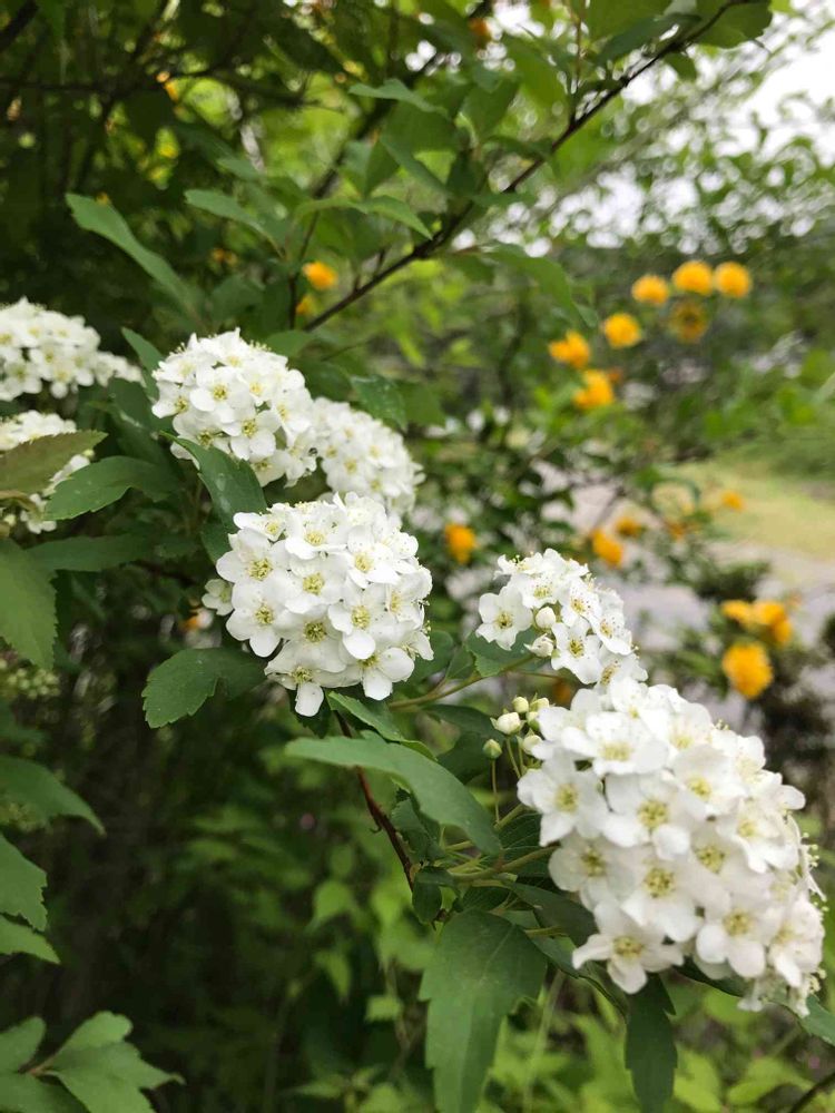 山吹と仲良くコデマリの花が咲き始めましたよ😊