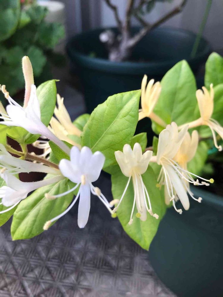 実家のガーデンに行く道の横に自生していたのを、挿し木していた金銀花