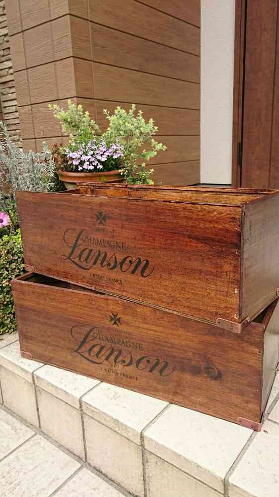 ワインケースには2つ分の幅の短めのプランターが入ってます。1つはアイビーとリシマキア、もう1つはセダムとペチュニアが植えてあります。理想にはまだ遠くて、来年くらいにもりもりに育ってくれたらいいなーと長い目で見てますー(^^)