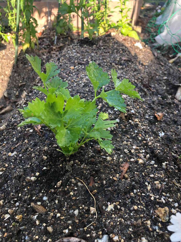 セロリの苗を2株定植しました。ご近所さんが上手に育てていて、とても良い香りがしてきたので、私も真似して。うまく育つと良いなぁ😊
