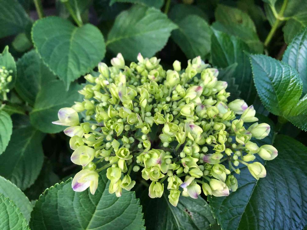 厚木市中央通りの紫陽花。蕾から咲き始めに変わる絶妙なタイミング。
