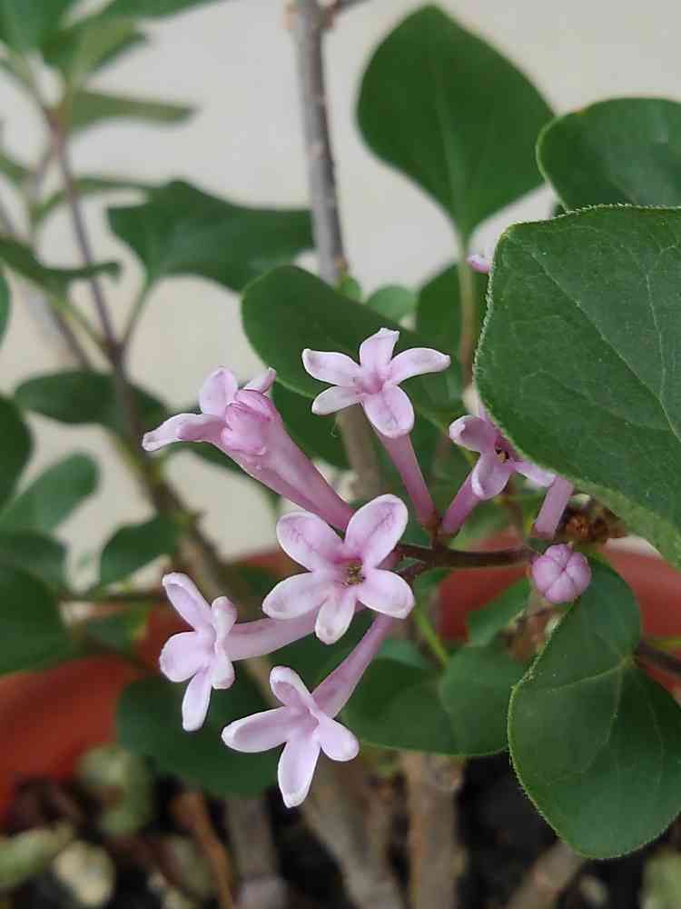 朝の散歩道で見かけ、枝を貰い、挿し木で育てて3年目 小さな花が枝先に❗