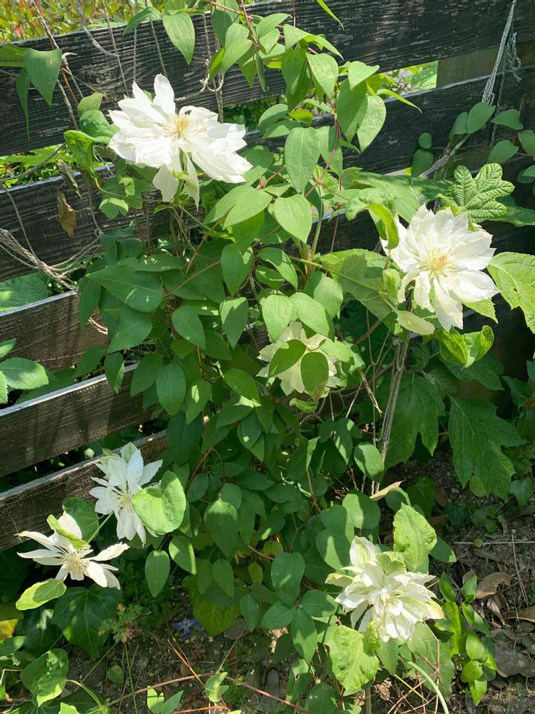 雪おこし、爽やかなクレマチス ですね。グリーンパッションは1番花の個性的な花が沢山ついて2番花でお口直し😄の感じなんです。