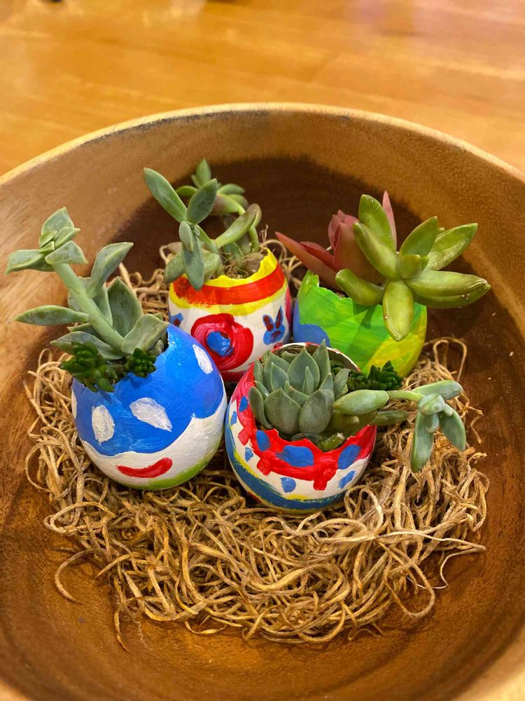 子どもは色を塗って満足してしまい、寄せ植えは適当に突っ込んでました😅