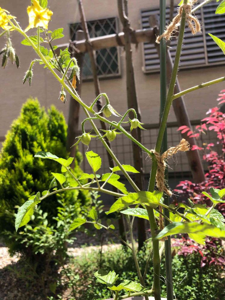 トマトもうちっちゃい実ができてる〜
