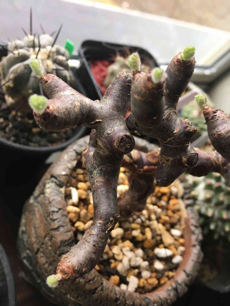 今年3月にヤフオクで見つけて、手に入れました。小さくて未発根でしたが、ひたすら発根管理して、1週間くらい前に小さな葉が芽吹いているのにきづきました。