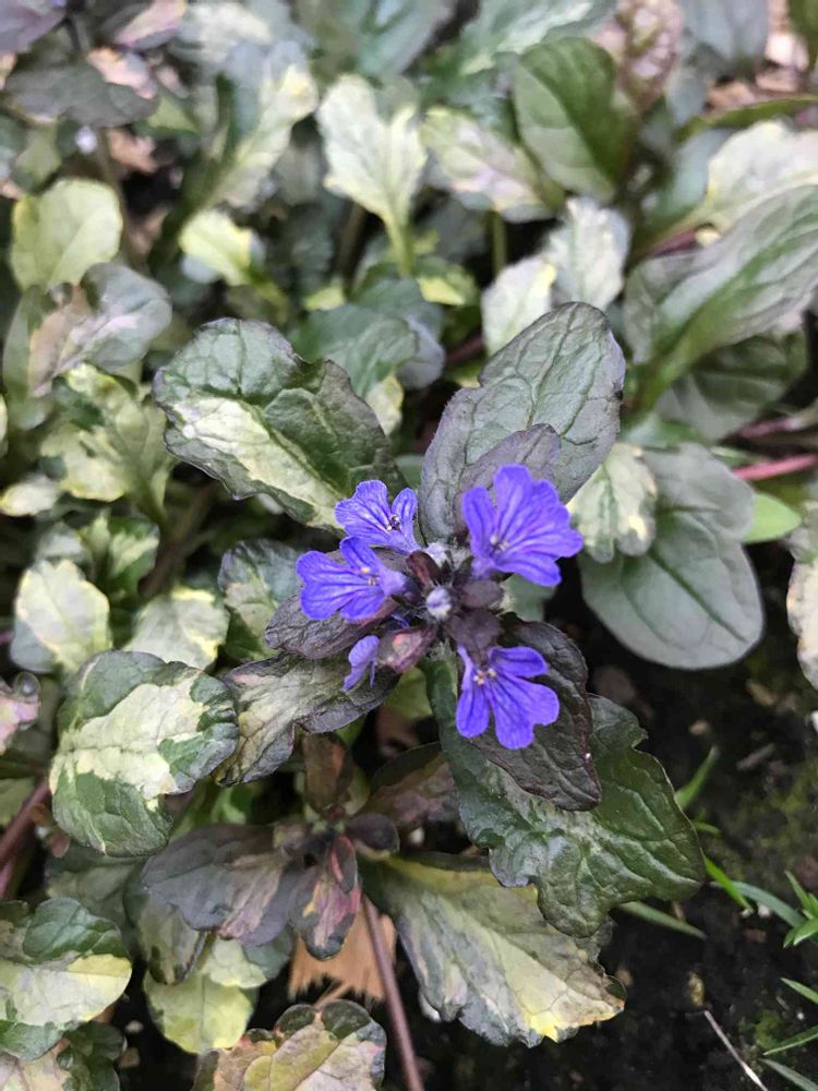 小さな💜の花。🌱も斑入りで👍ですね❣️グランドカバーな感じで広がっていくんですか?