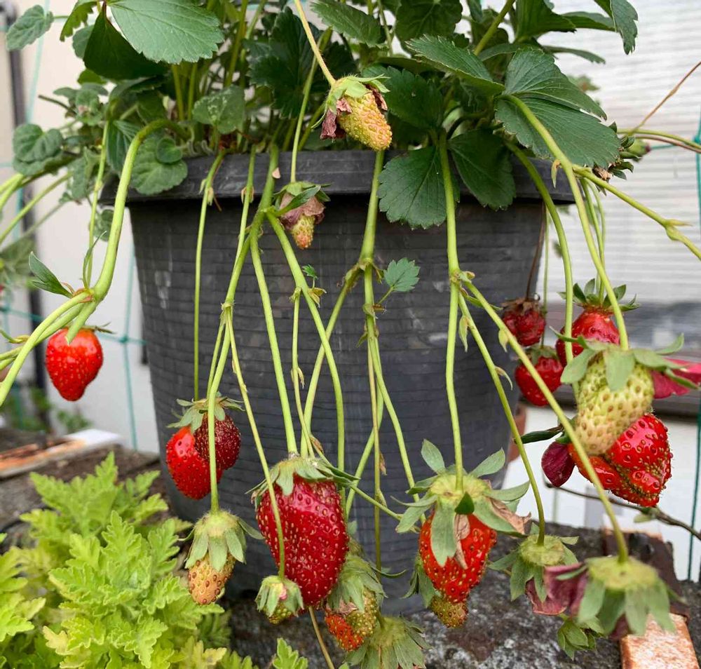 食べられるけど、観賞用にしてます。実は白い花の苺の方が美味しいので。