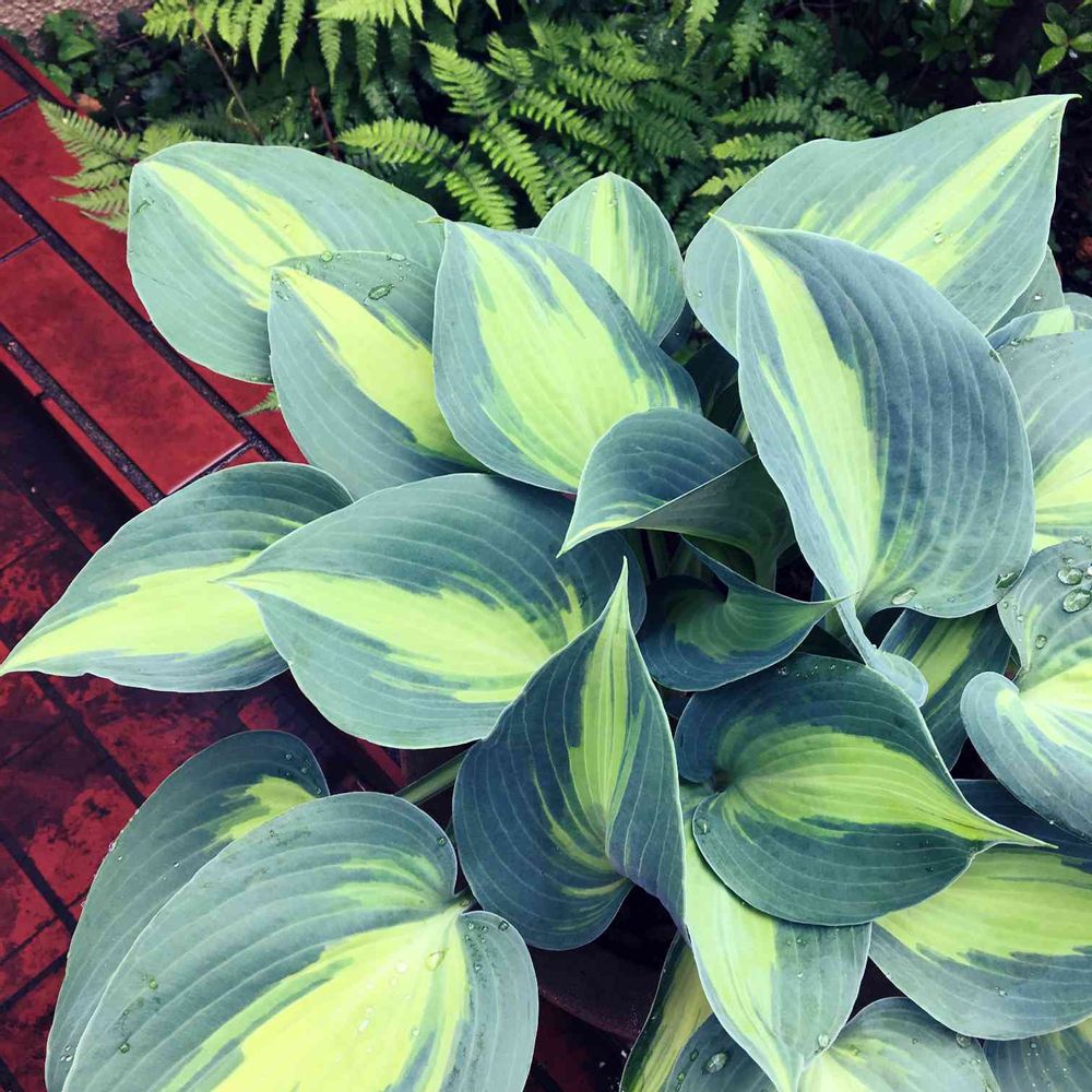 奥に写っているのは毎年勝手に生えるシダ。ホスタとシダはよく似合う。