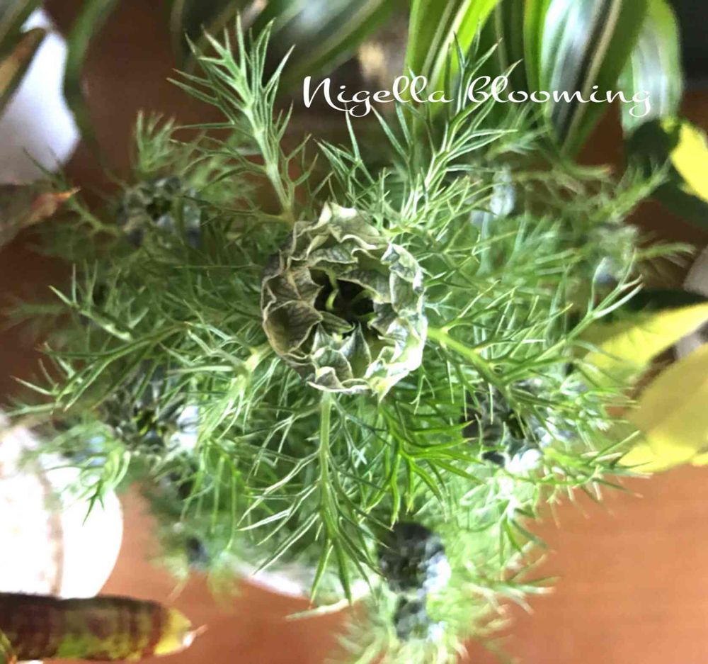 はい、ニゲラって咲く前は葉っぱと同じ感じてこんな色です