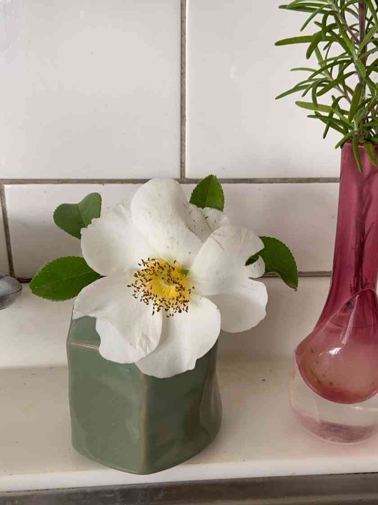 お友達からもらった薔薇名前がわからないそうなのですが、もりもり大きくなって、トゲの嫌いな主人が、草刈りするのにビヨーンと伸びて煩わしいと言うので、徒長をバサバサ切りました。