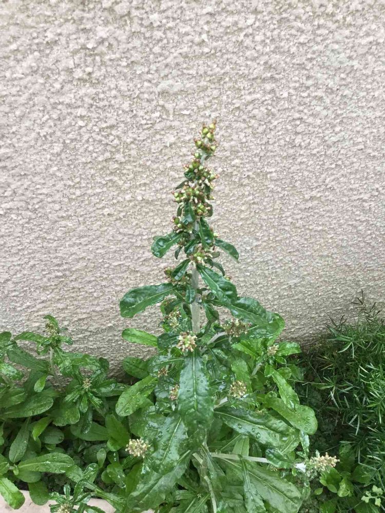 テラスの脇に生えた植物、忘れな草と思って見守っていますが、、