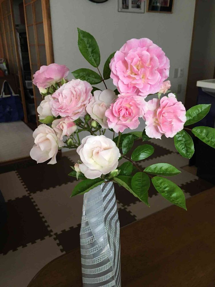花瓶に刺してみました。ちょっとずつグラデーションが出て来ましたね。