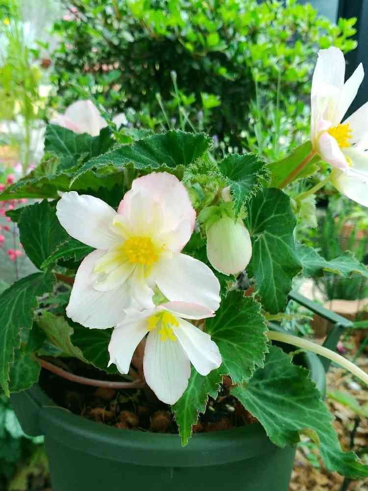 ベゴニアさんなんですね😊白い花にうっすら、ぴが入って、綺麗で可愛いですね💕