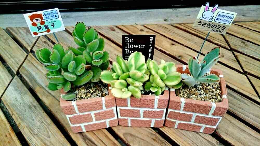 熊童子🐻斑入り熊童子🐻月兎耳🐰をお揃いのコンクリ鉢に植え替えました✨