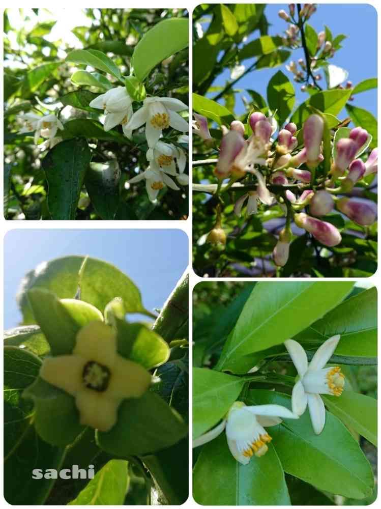 「柿」「ミカン」「レモン」「ユズ」の花たち…