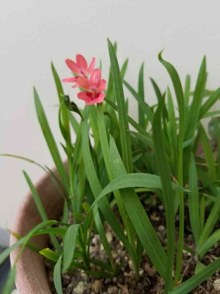 私の育てている姫ヒオウギと同じように思います。小さくて可憐なお花ですが、丈夫でほとんど世話要らず。あちこちの鉢に種が飛んでどんどん増えました😅