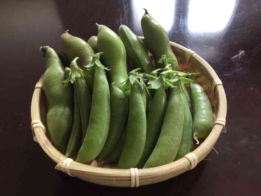 畑で取れました。とれたてのスナップえんどうは甘ーくて美味しかったです😋