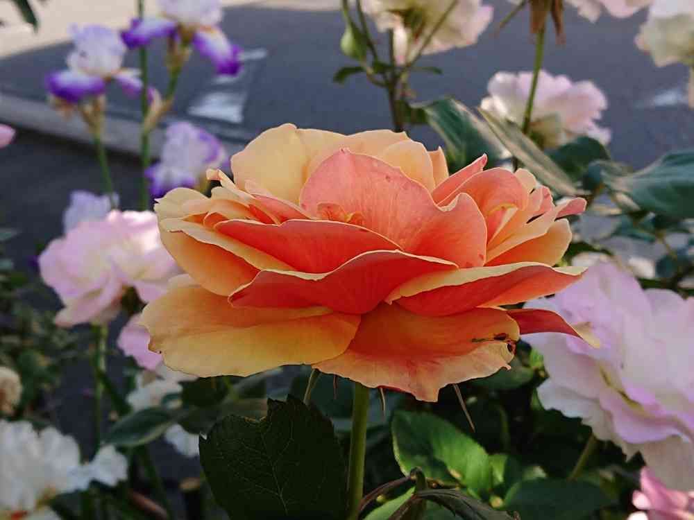 アバウトフェイス嬢咲きました。遠くに見えるはジャーマンアイリス、周りはマチルダ❗。よく目立ちますね。