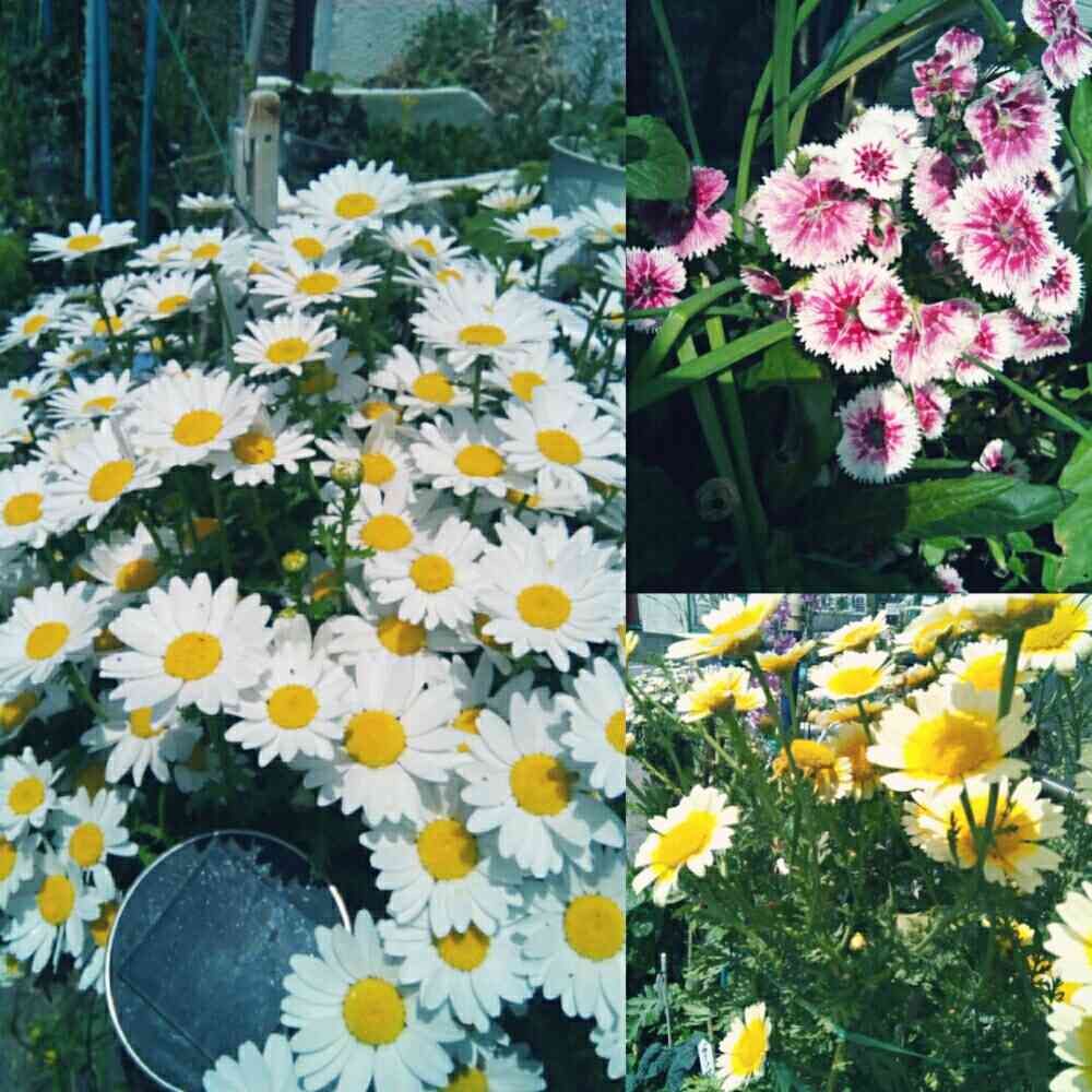 うちの玄関前のプランターに咲いてる3姉妹です!右下の春菊!野菜ではなく立派な華です?おしまい(笑)