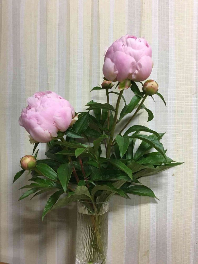 今年も近所のおばあさんが、やっと咲いたよと持ってきてくださいました。昨日はまだ蕾がまん丸でピンクのピンポン球がついてるようでした。