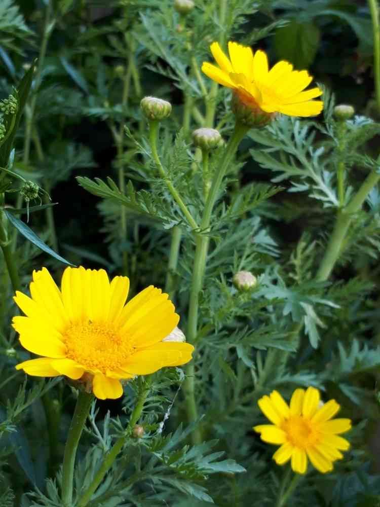 庭のキッチンコーナーの春菊。お役目終わっても花、黄色い元気色でかわいい💠