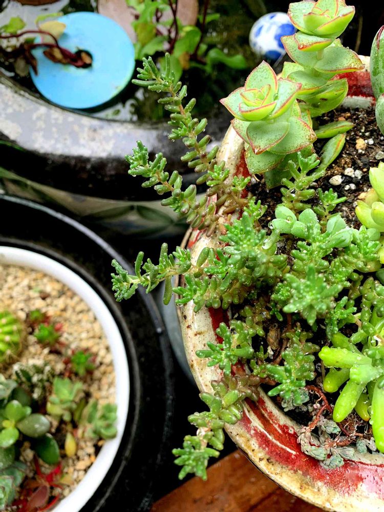 スカスカだった寄せ植えからはみ出すように生えてきました…細かいけど元気でプリプリしてます(^。^)