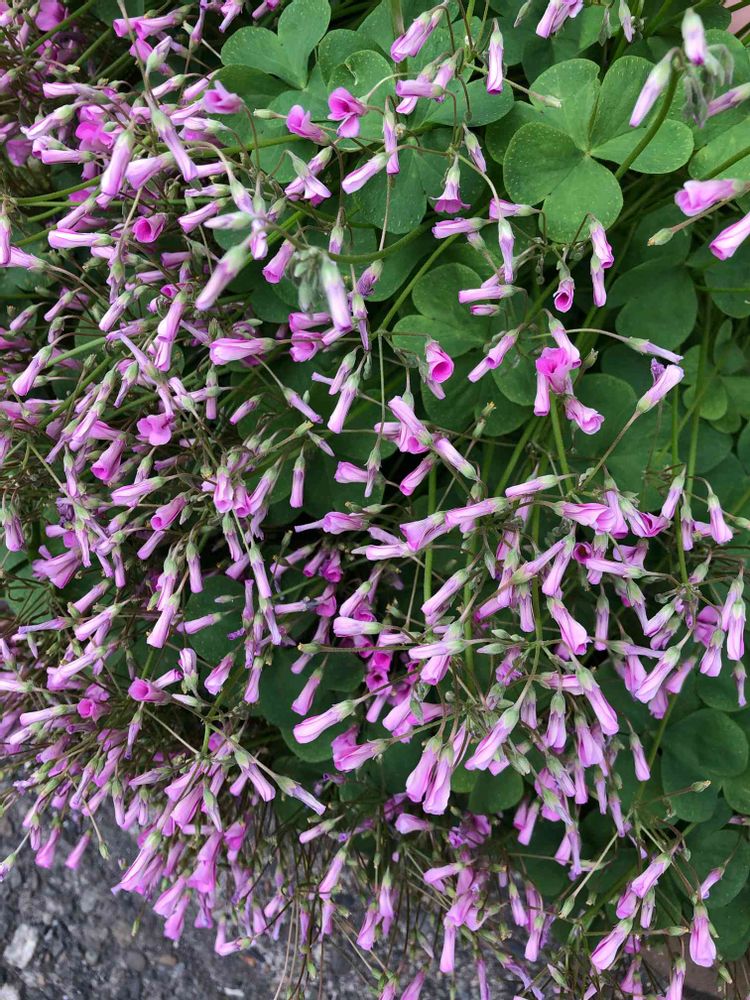 ムラサキカタバミですね。カタバミもタンポポみたいに夜しぼみ、太陽とともに花が開きますね。