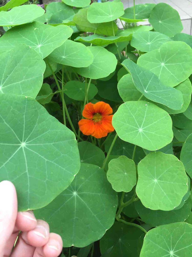 金蓮花の葉っぱジャングルの中で。。ひっそりと一輪お花が咲いていました🌺明日は今年一番の冷え込みになりそうだから。。大丈夫かなぁ?