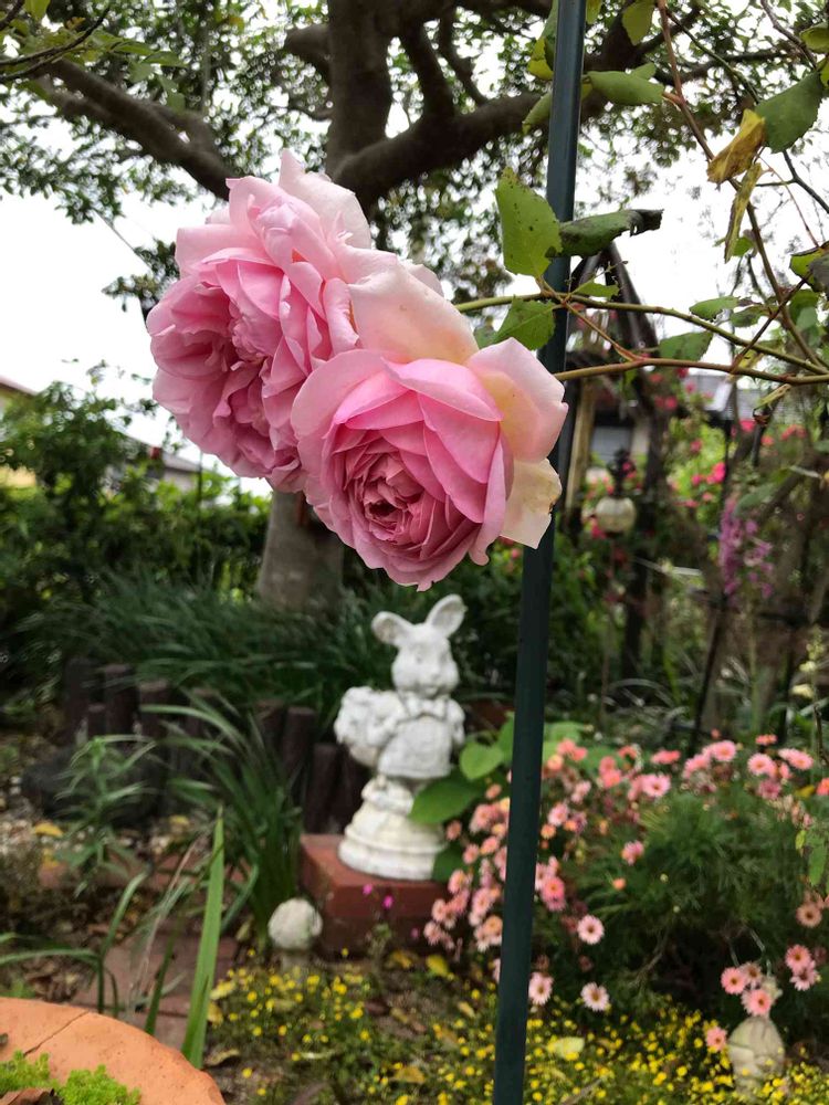 目指せ!自慢の庭さんのバラ《トットちゃんに捧げるバラ》,ピンク色のマーガレットの花,クロガネモチの大きい樹の投稿画像