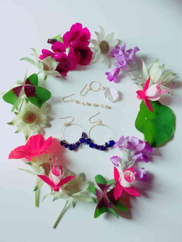 こんばんは〜🌃お花のリースかと思ったら中にピアスが•••ブルーの丸いフープピアス、同じようなの持ってます。パープルですけど自分で作りました。片方しかない場合は、もう一つ穴を開けたらどうですか(笑)実は私は3つ開けていてハンパなピアスを付けているからです😆