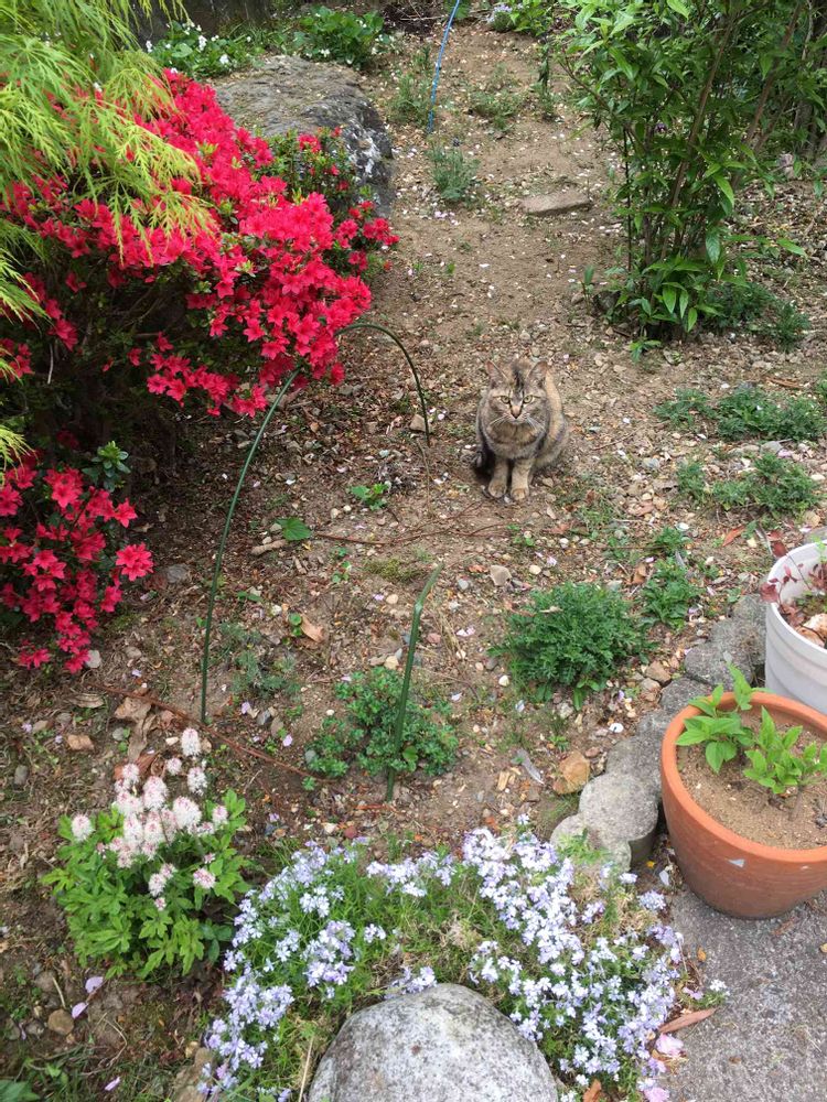 me さんのお庭は猫ちゃんの楽園ね🐈