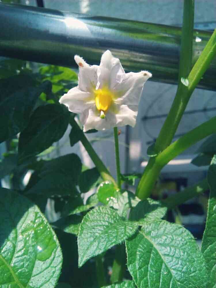 玄関前のプランターのじゃがいもの花が咲きました!しかしハッキリ言って邪魔(笑)
